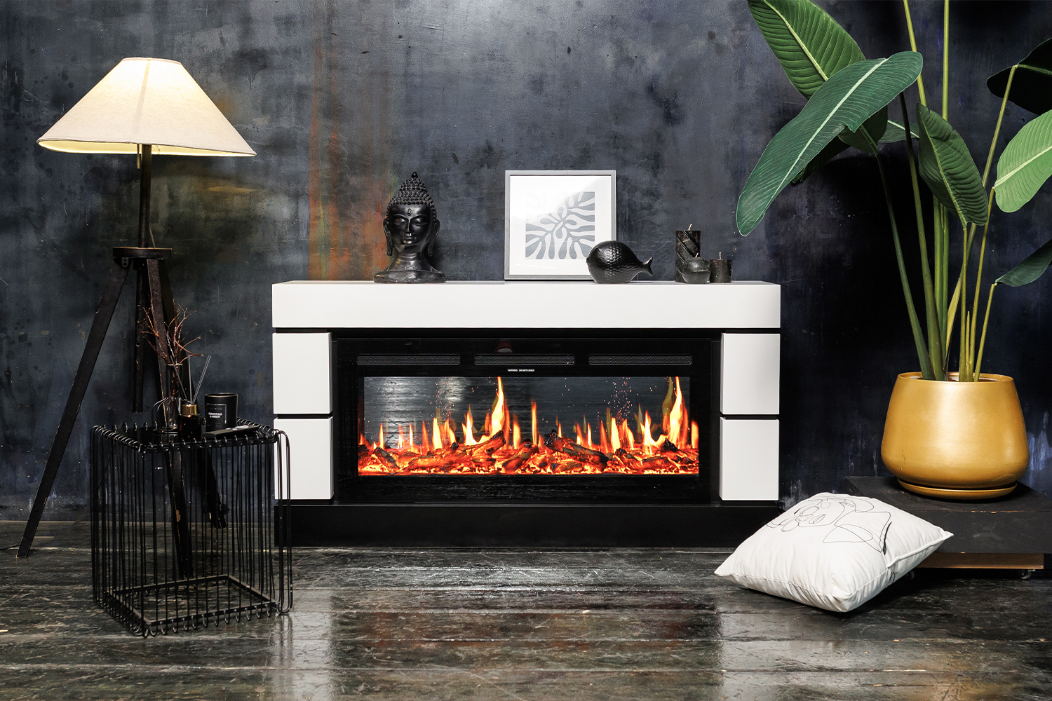 Управление настройками каминов может осуществлять с сенсорной панели, расположенной на фронтальной поверхности экрана, или пульта ДУ, который поставляется в комплекте.