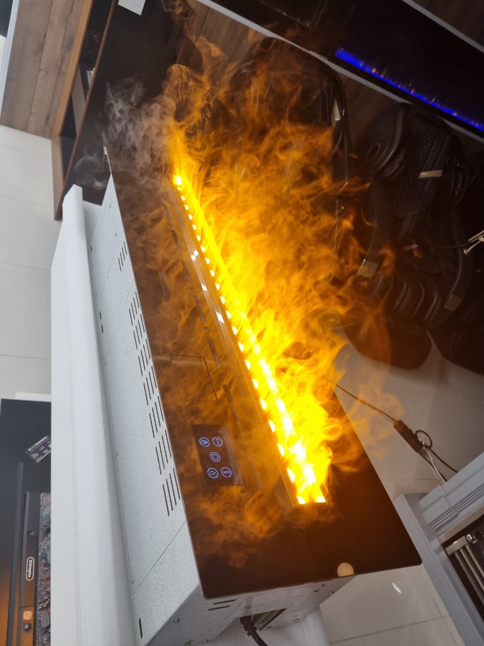 - Эффект пламени можно включить, не включая при этом обогрев. Просто представьте — в любое время года наслаждаться видом горящих дров!