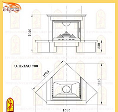 Компактная пристенная каминная облицовка Мета ТРОЯ 705 изготовлена из колотого доломита желтого цвета, натурального мрамора (бежево-серого цвета) с обработкой Антик и камня META Stone™ серо-белого цвета.